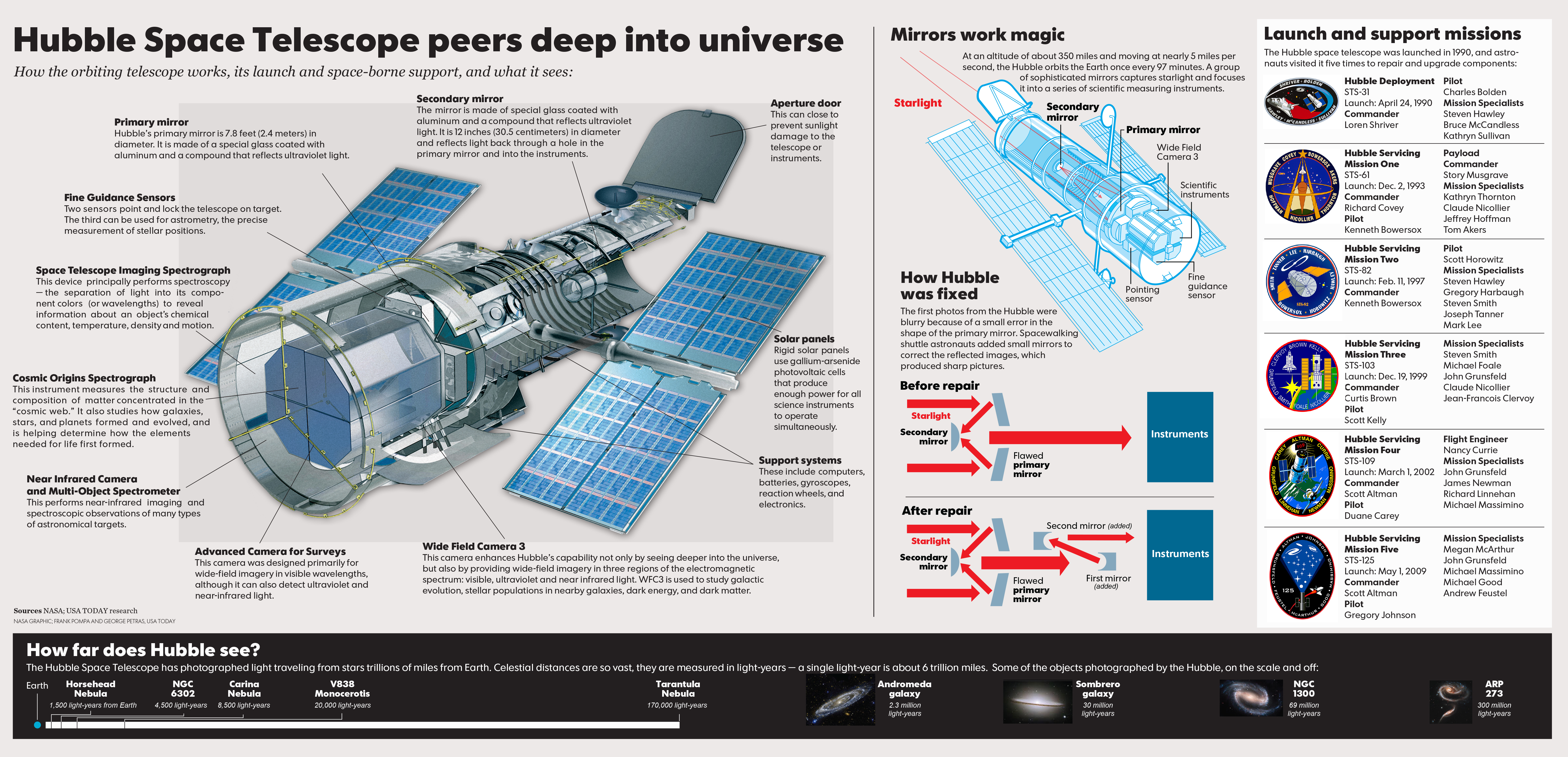 I reworked a NASA graphic depicting the Hubble Space Telescope for a USA Today/National Geographic Channel tab on the 25th anniversary of the telescope’s deployment.